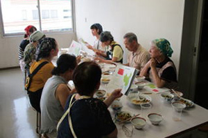 ![]() 試食後は、中国の食文化そして、講師のお2人の出身地の料理を資料で紹介。 |