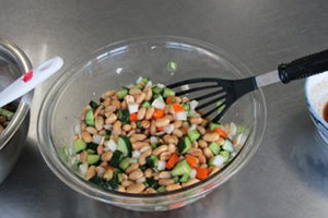 ![]() 野菜と調味料を和えます。 |