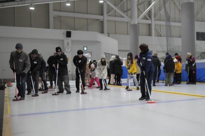 12月9日(土)みちのくコカ・コーラボトリングリンクで多国籍カーリング交流会が行われました。当日は、日本人の参加者が12名・7つの国と地域から集まった外国籍の参加者が17名、合計29名の参加者の方が集まりました。国内外の大会で活躍されている講師の方2名をお迎えし、基礎の習得からゲームまで楽しむことができました。初心者の方がほとんどでしたが、練習を重ねていくうちにどんどんと上達し、最後にはしっかりと的に入れて点数を決める姿も見られました!