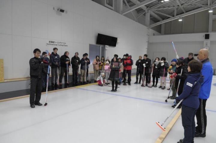On Saturday, Dec 9, the Multinational Curling Event was held at Michinoku Coka Cola Bottling Rink. 12 Japanese people and 17 people from 7 different countries and regions participated in the activity. With 2 teachers who have competed in many competisions both inside and outside the country, the participants were able to not only learn the basis, but enjoy games at the end of the activity. To those who participated in the event and the teachers, thank you very much!