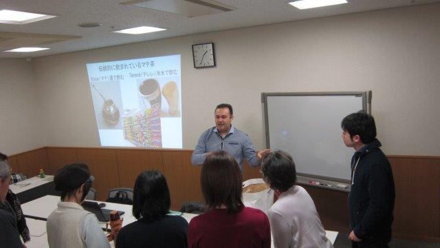 2月24日から3月17日まで語学入門講座「楽しく始めるスペイン語」が行われました。パラグアイ出身のゴンザレス・カルロス・ハビエル氏を講師に招き、挨拶などのスペイン語の基本のほか、パラグアイの文化にも触れ合う機会となりました。パラグアイの国旗は裏と表でデザインが異なることや、パラグアイではマテ茶がとても愛されていて人々が水筒に入れて持ち歩いていることなど、色々なことを教えていただきました!受講者の皆さま、カルロス先生、ありがとうございました!