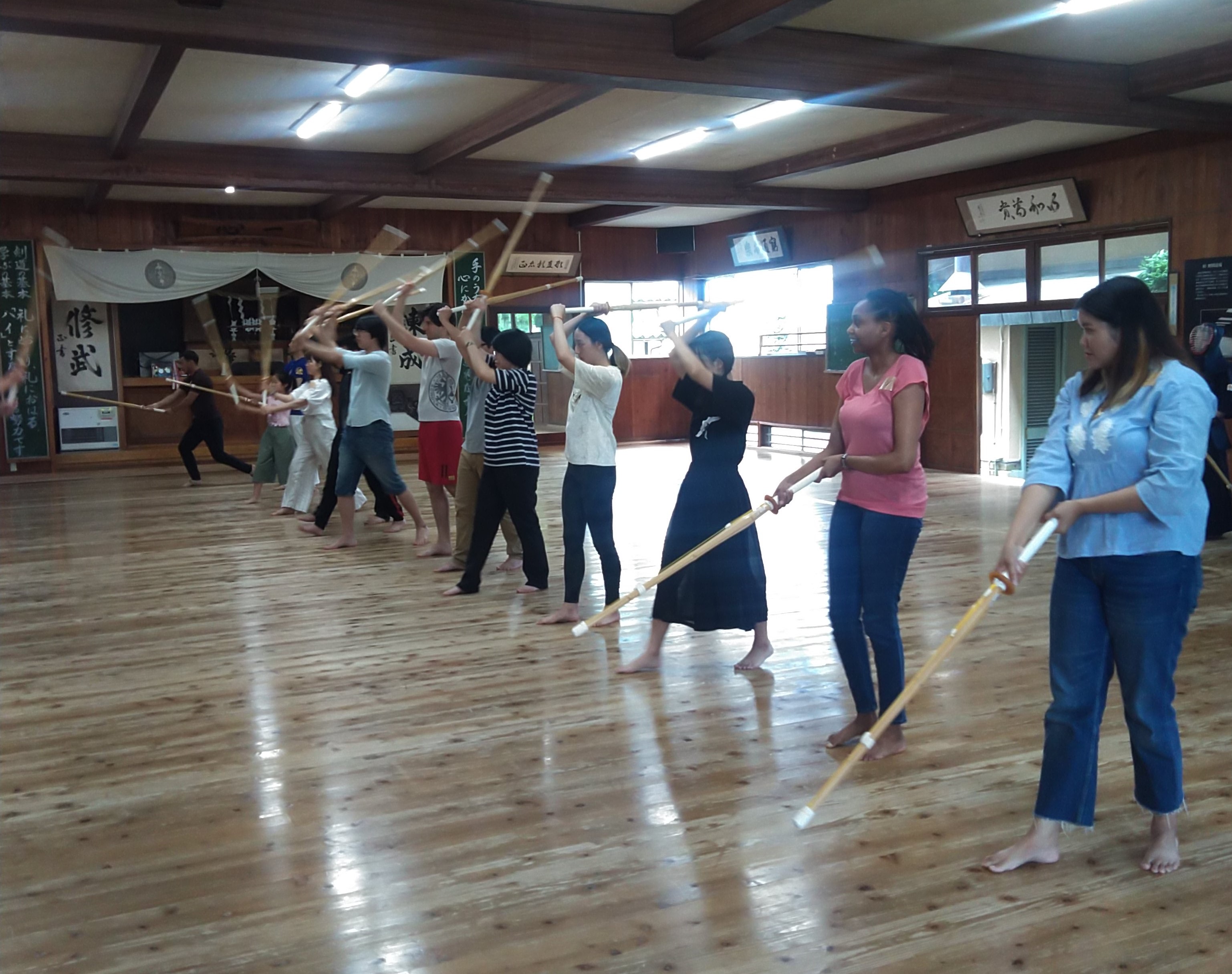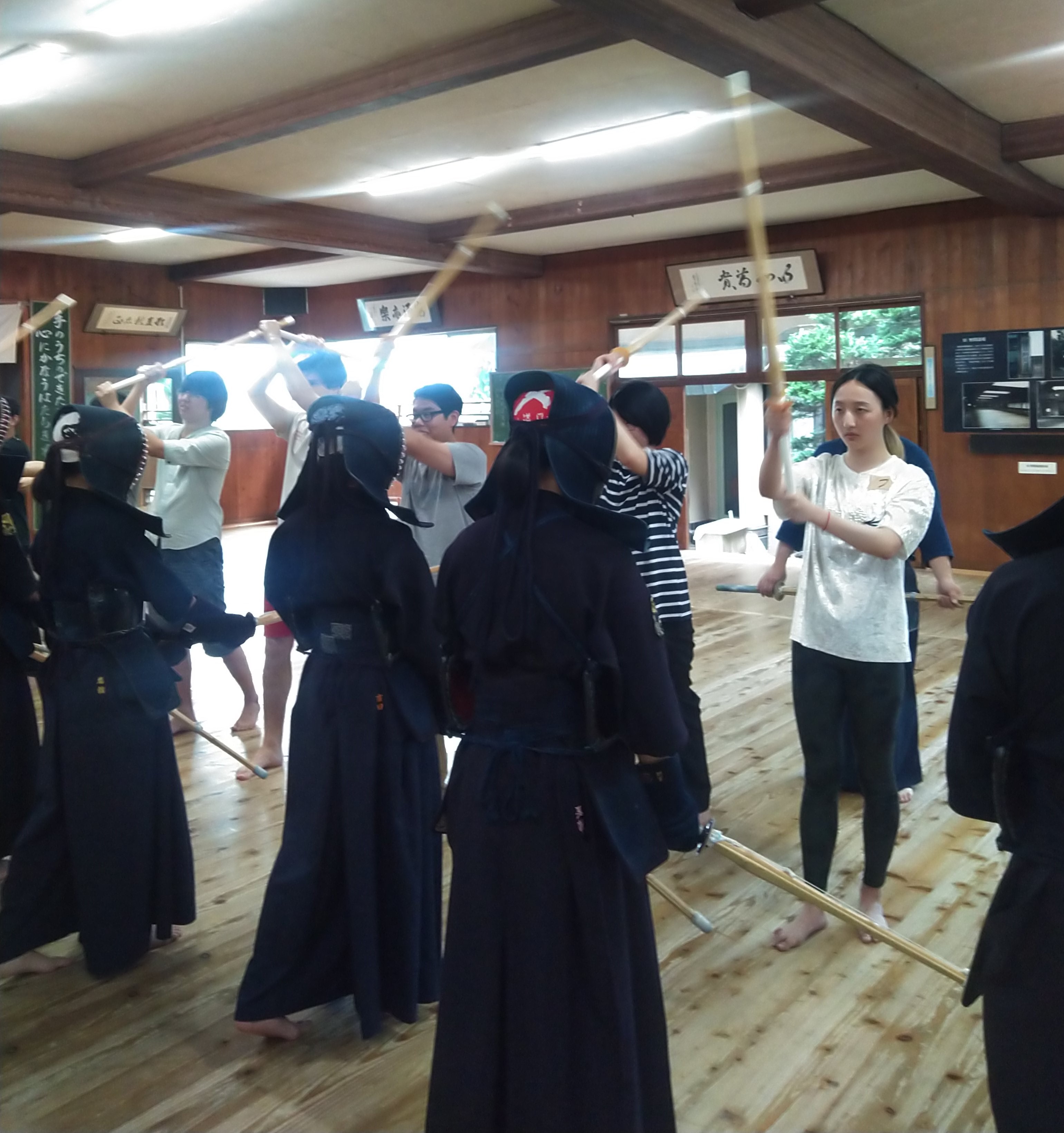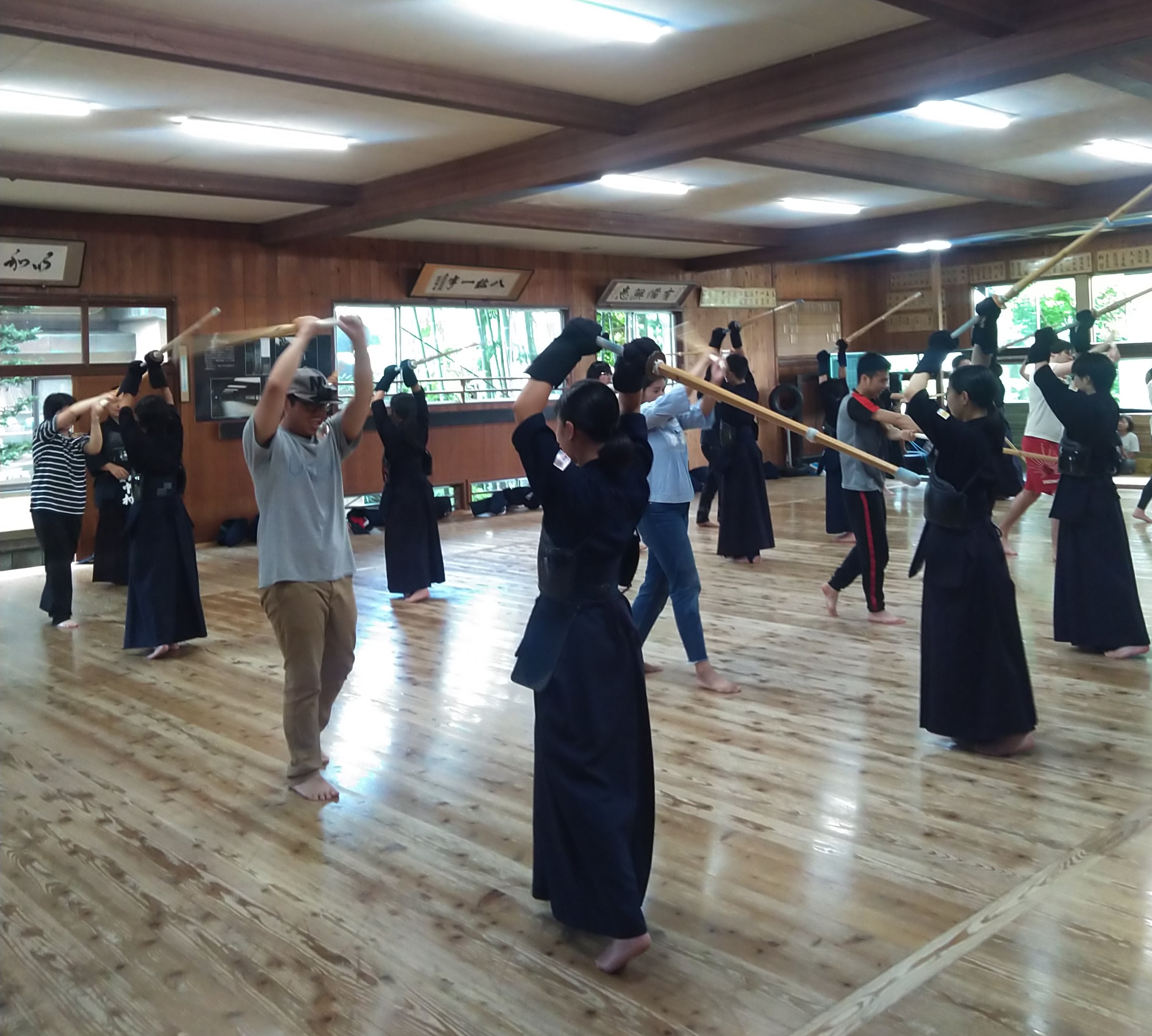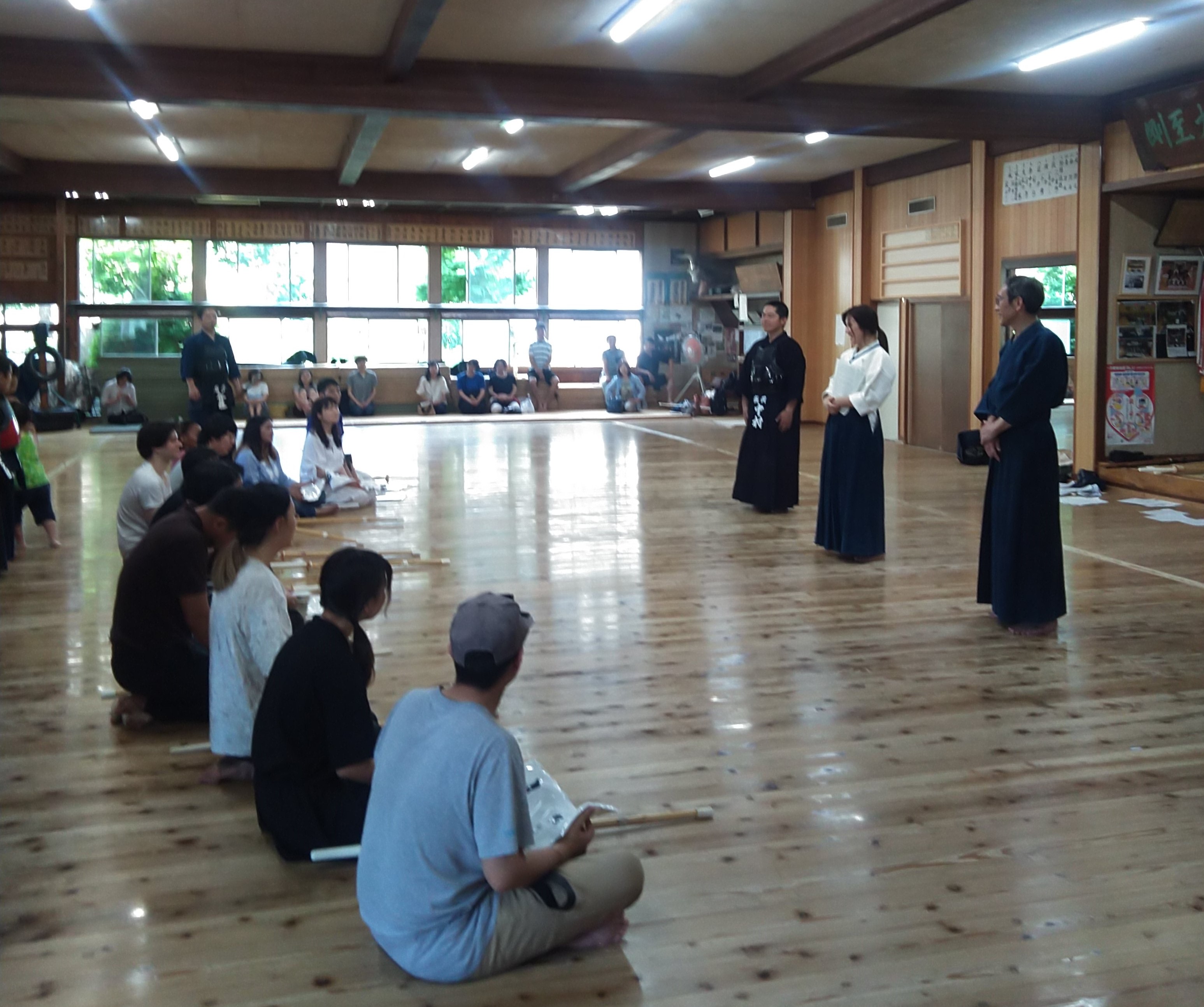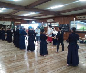 令和元年度 日本文化講座「Let’s Do Kendo」が7月20日(土)に橋市道場で開かれました。講座当日の気温は30℃にも及び,座っているだけで汗が出そうな暑さでしたが,道場の中は少しひんやりとしており,歴史と伝統を感じさせるような空間の中講座を行いました。