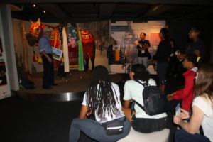 目の前で繰り広げられる稽古に圧倒されつつも、みんな興味深そうにその様子を眺めています。