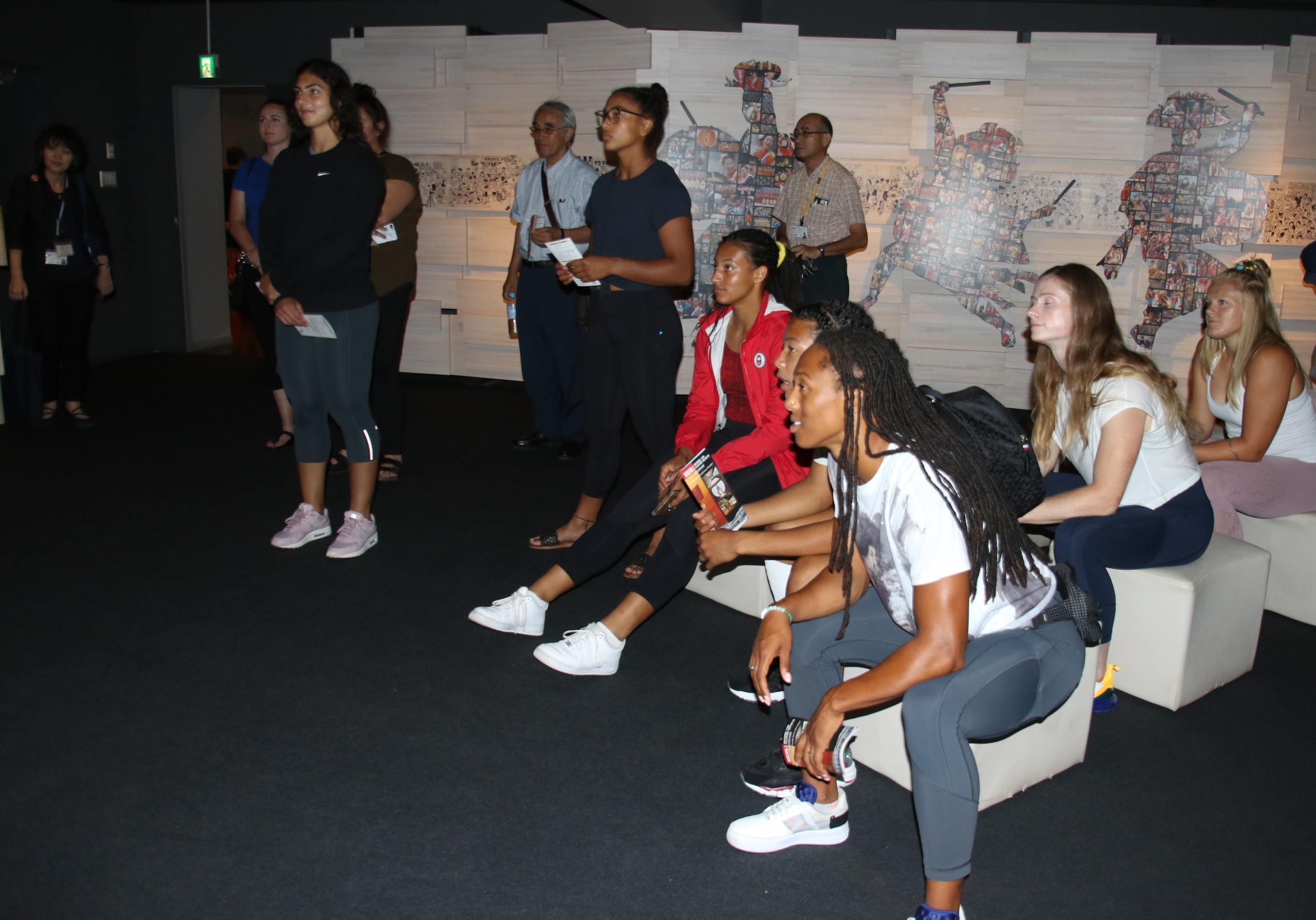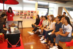 茶道の見学をした後、お抹茶とお菓子も頂いてみました。茶道では抹茶を入れる一連の動作を、なにか神聖なものをみるような雰囲気で見つめている選手たちでした。