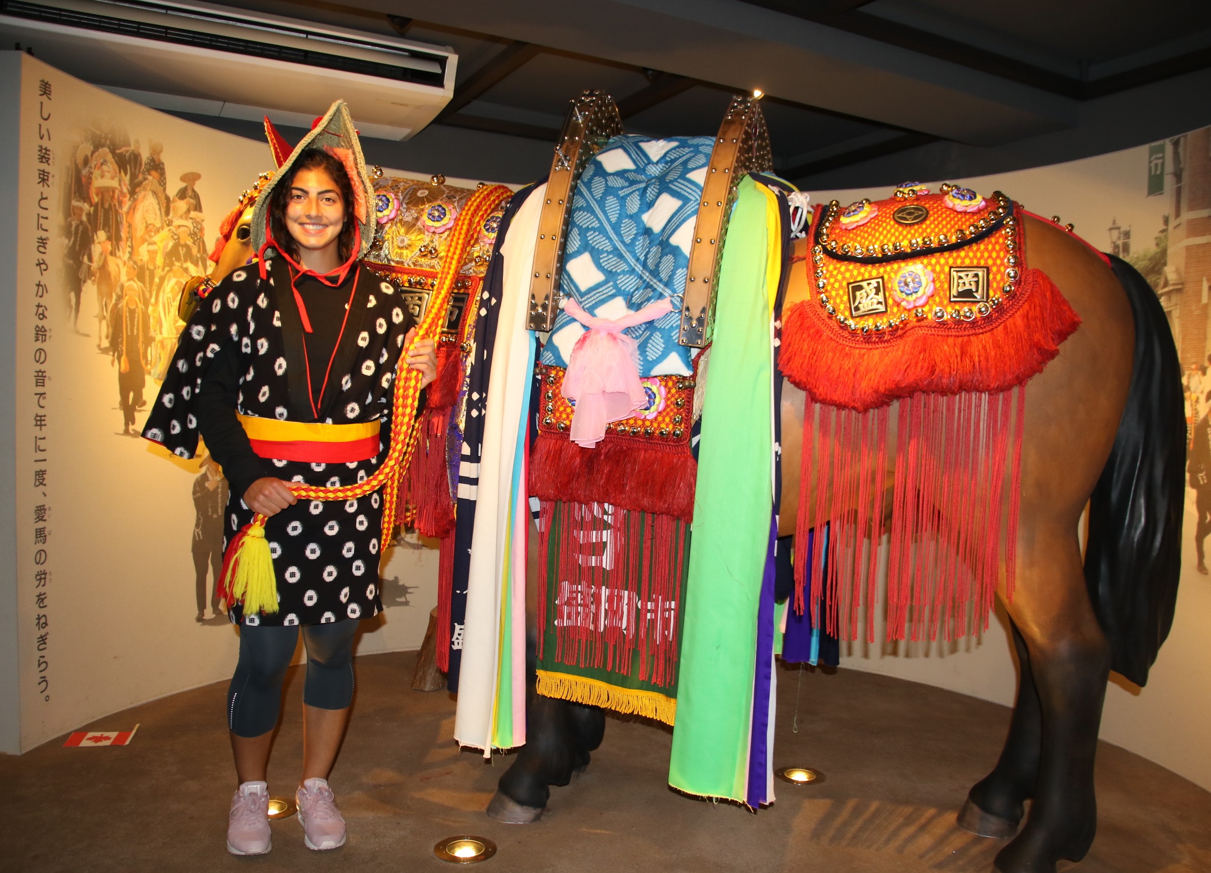 ちゃぐちゃぐ馬っこの説明を熱心に聞いている選手たち。説明の後は衣装を着て記念写真をパチリ☆