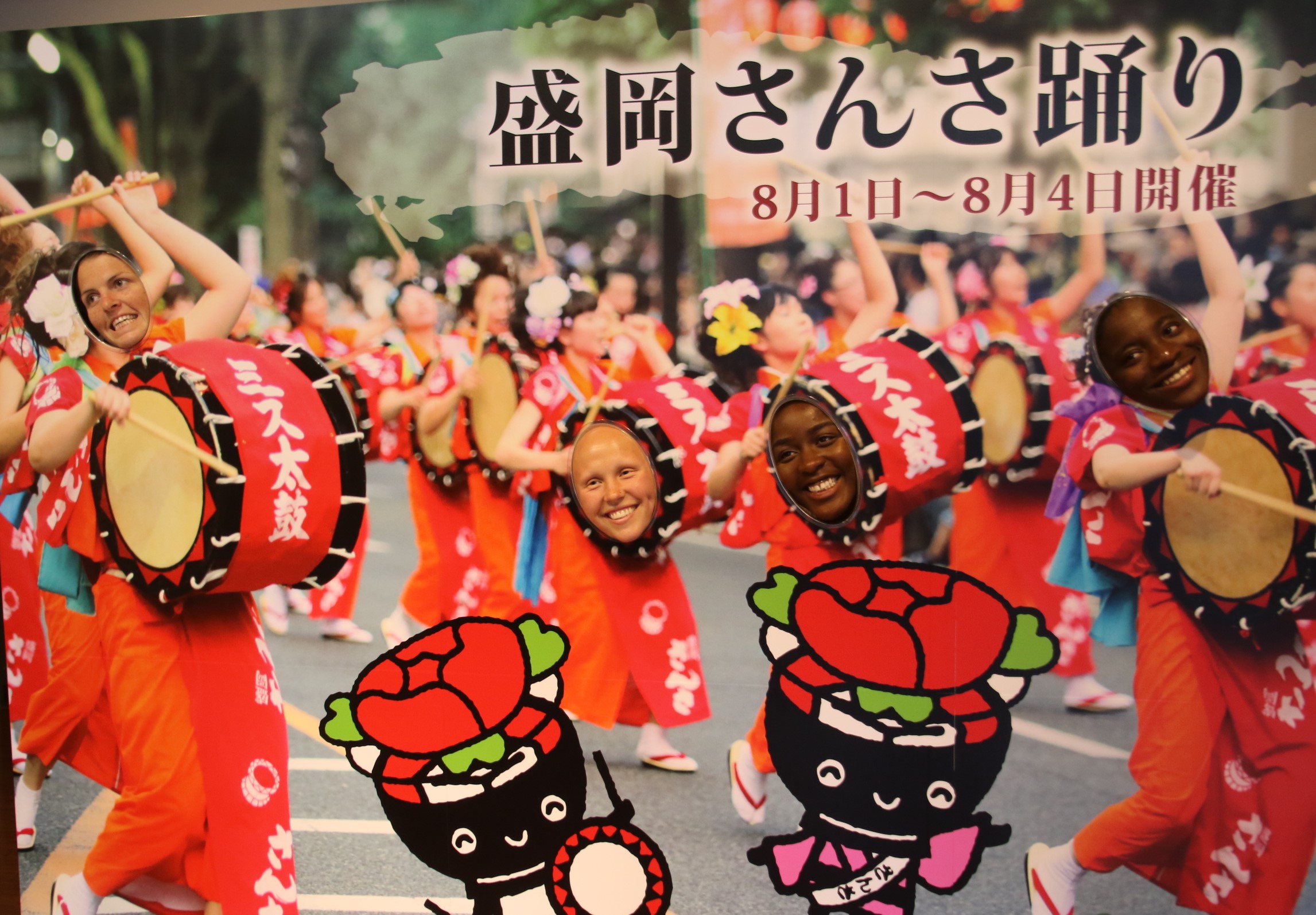 その他は、盛岡とビクトリアの友好の証『盛岡ミューラル』を見たり、山車に乗り太鼓を叩いてみたり、盛岡城跡公園まで少し足を延ばしトーテムポールを見たりしました。