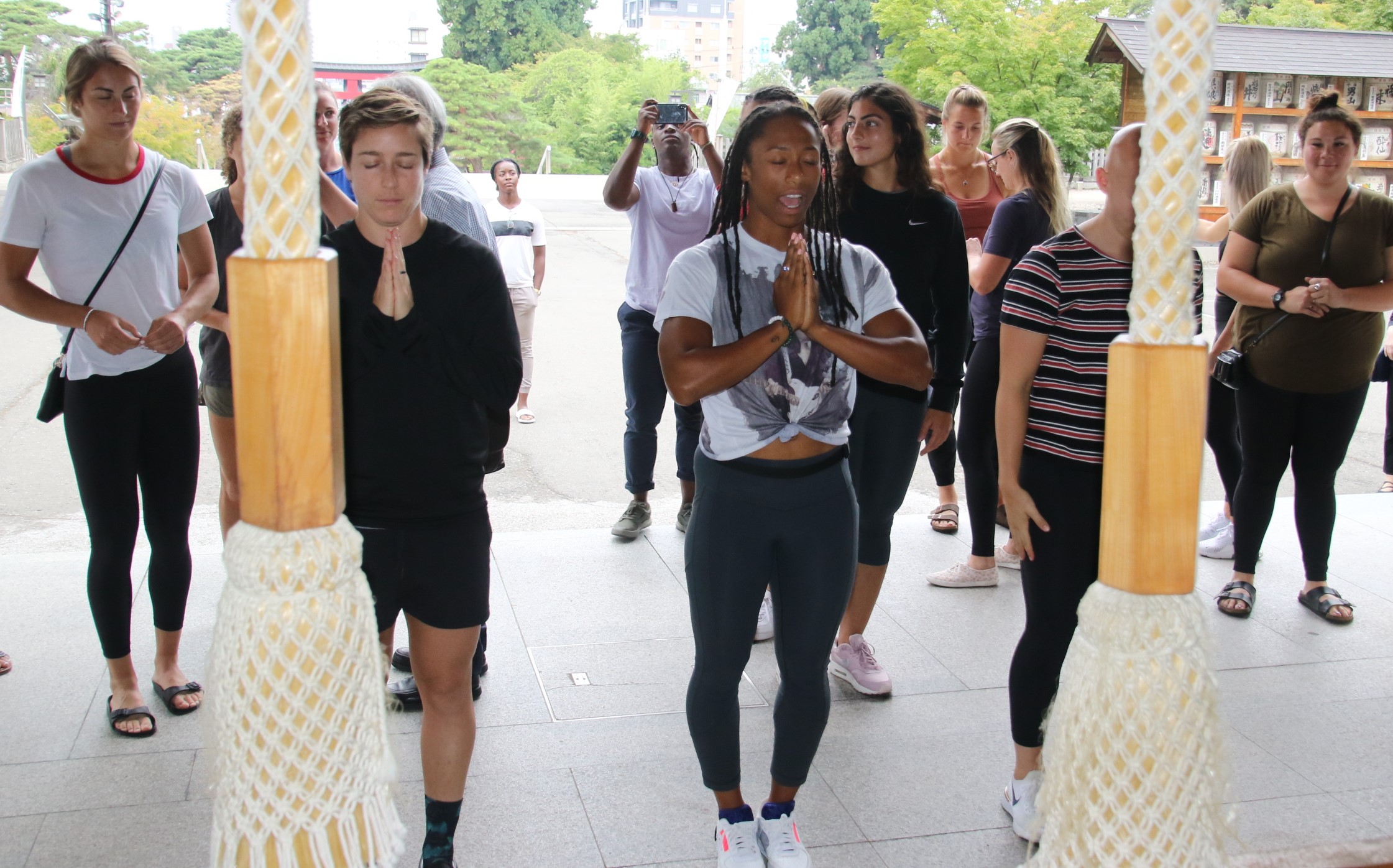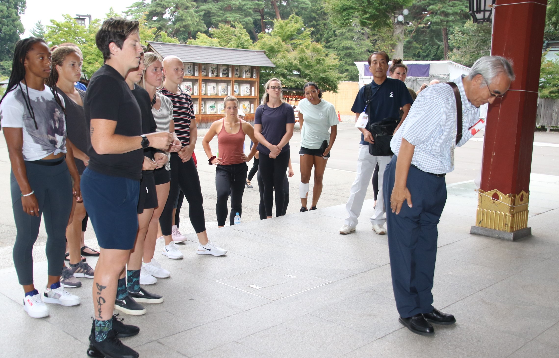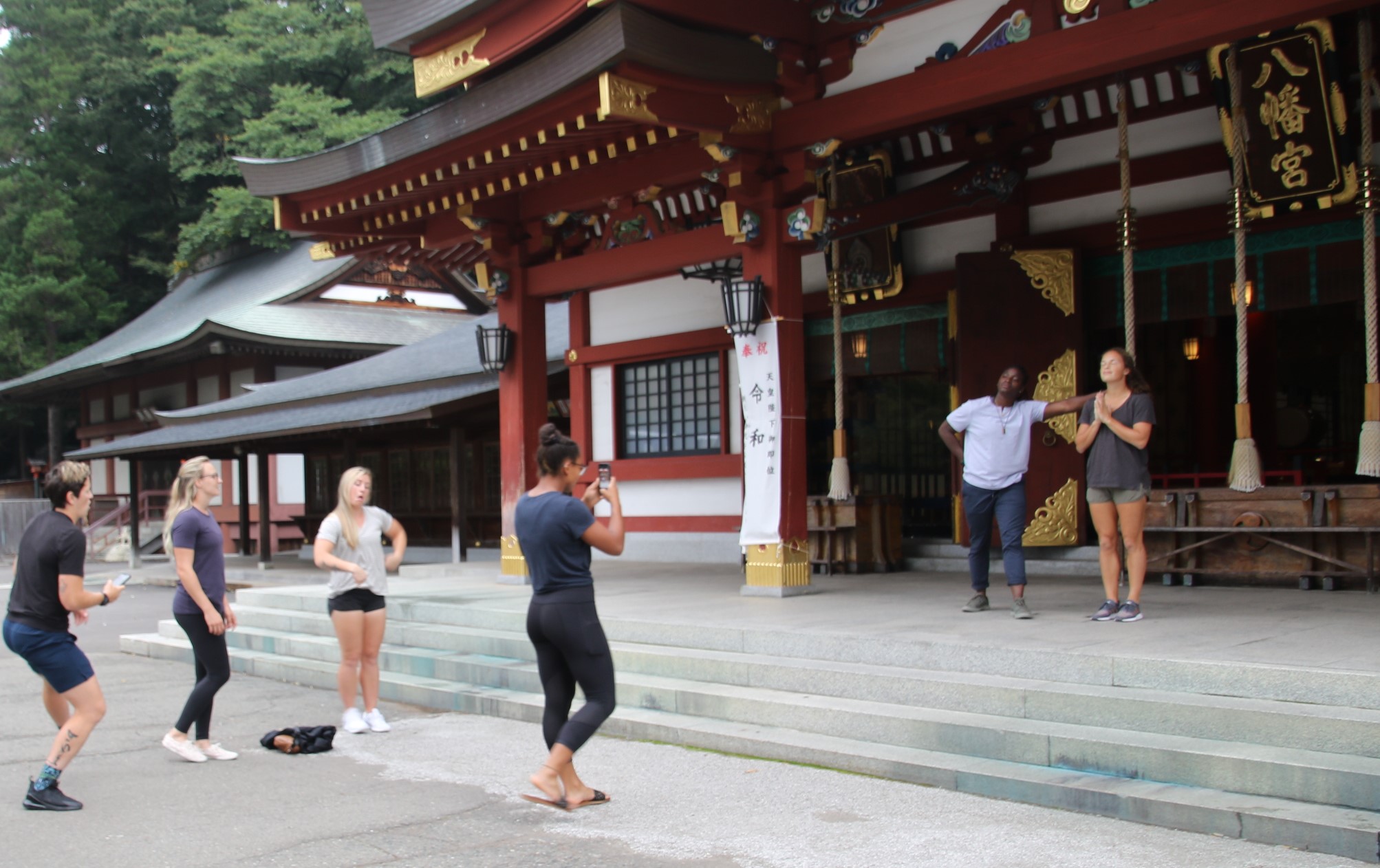 日本らしい建物だからか、選手たちは記念写真をたくさん撮っていました。