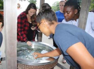 盛岡善意ガイドの会の方から、神社で祈祷する際の礼法を学びます。