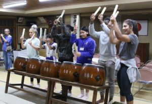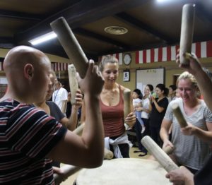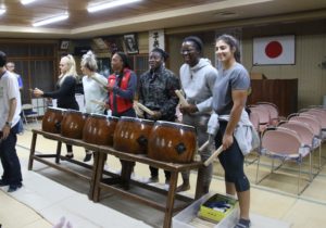 この日は夕食後もお出かけです。盛岡駅近くにある、橋市道場へ行き剣道見学をし(最終的には少し体験もしました!)、盛岡秋祭りの練習をする『か組』の皆様にご協力いただき、太鼓の練習をしました。