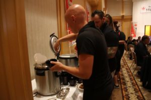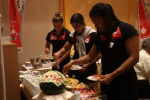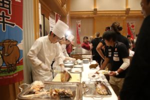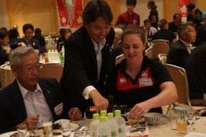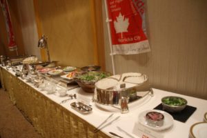 このレセプションでは、カナダチームと日本チームを始めとしたたくさんの関係者、ゲストの方々にお越しいただき、盛岡の食材でおもてなしさせていただきました。