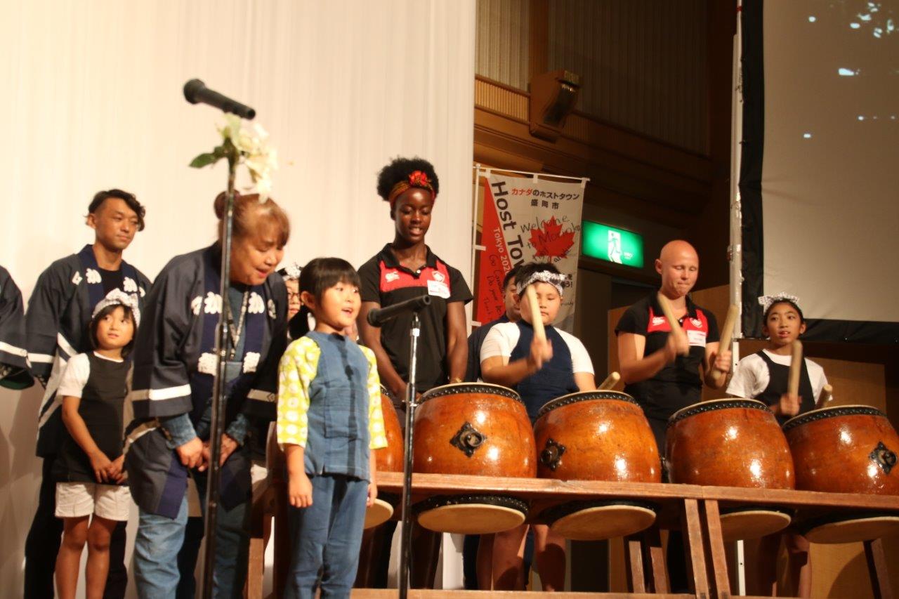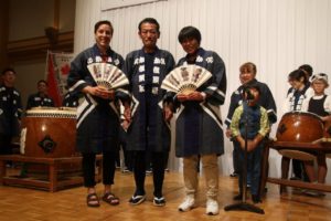 最後には法被と扇子のプレゼントもありました。両チームのキャプテンが着て記念写真です。盛岡ならではの文化体験をして頂きました。