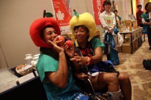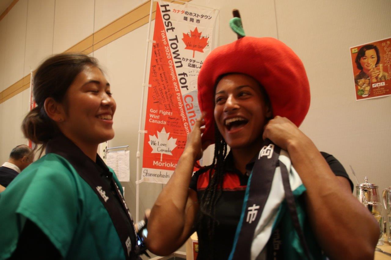 妙に似合うオリヴィア選手。日本選手やチームメートのアジア選手と一緒に被り、じゃれ合うように楽しんでました。