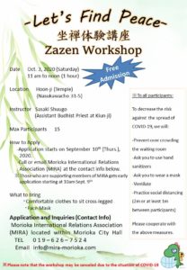 Zazen Workshop (坐禅体験講座) ~Let’s Find Peace~