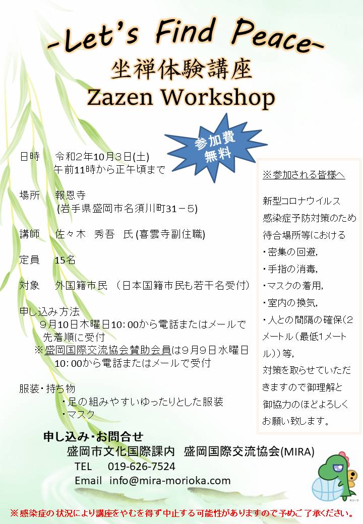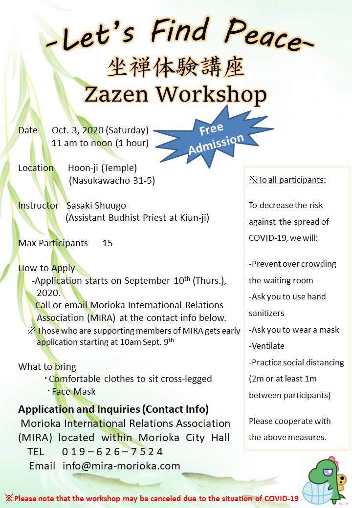 Zazen Workshop (坐禅体験講座)~Let’s Find Peace~