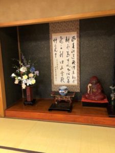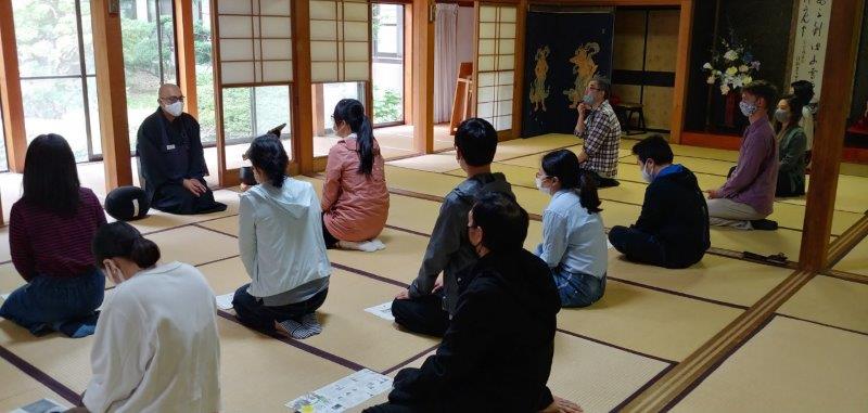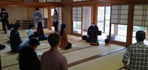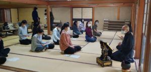 無事に10月3日に坐禅体験講座を開催することができました。コロナ禍での講座の開催ということもあり、普段だと1時間半の日本文化体験講座を1時間に短縮して、広くて換気ができる部屋での開催となりました。