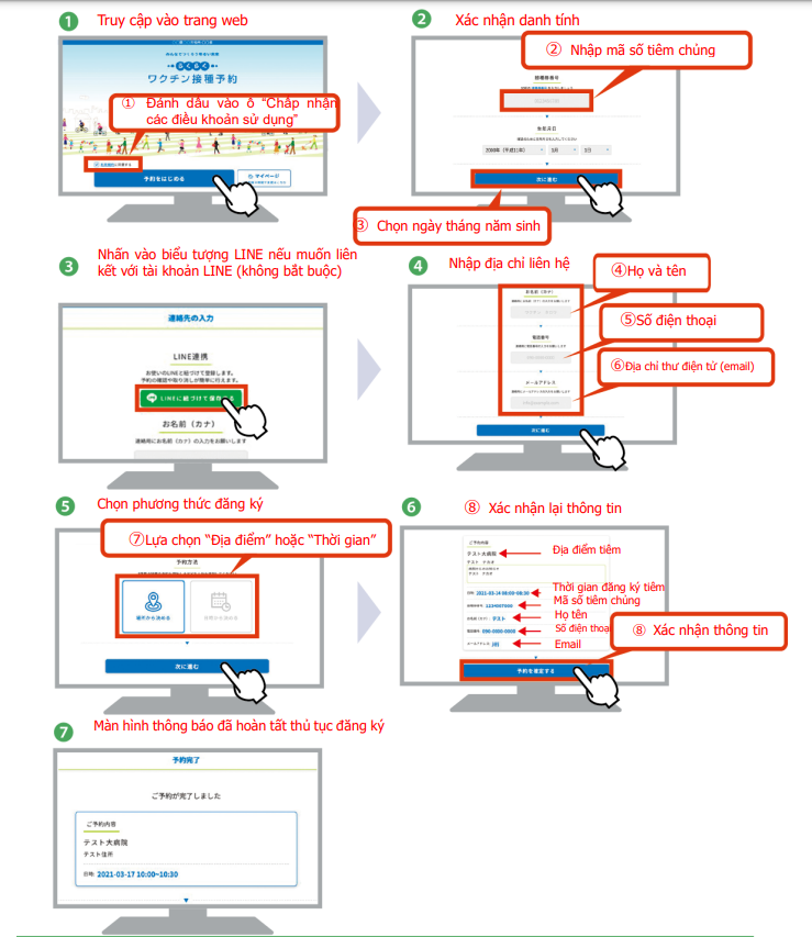 COVID-19ワクチンの注射(ちゅうしゃ)を予約(よやく)できます。予約(よやく)はインターネットかLINEです。