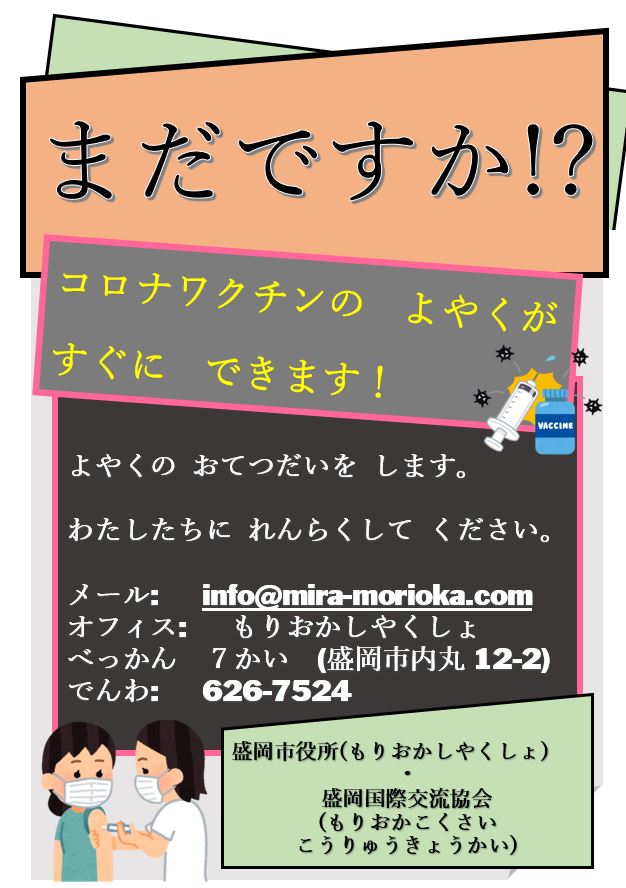 Anyone who is having trouble making a vaccination reservation, please feel free to contact us.
