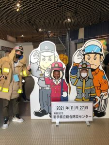 事前にオンライン「やさしい日本語研修」を受講した日本人参加者と、盛岡在住の外国籍市民が一緒に、バスで矢巾にある県立総合防災センターを目指しました。防災センターでは、火災で煙が発生した場合の視界の変化や、地震の揺れなどを体験し、全員が防災の重要性を再認識。また、避難所等で想定されるやりとりを、「やさしい日本語」を使ってロールプレイ形式で練習しました。参加者は、時には真剣な表情で、また時には和気あいあいと、学びを通じて交流を深めていました。