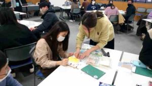 講師はやさしい日本語を使い作り方や注意点を説明したので、外国籍市民も理解しやすかったようでした。また、同じテーブルの参加者同士で、教え合う姿も見られました。