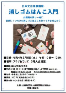 外国籍市民と一緒に、世界に一つだけの消しゴムはんこを作ってみませんか?