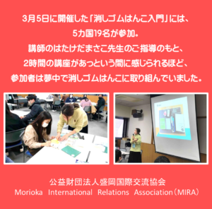 令和3年度の日本文化体験講座として「消しゴムはん入門」講座を開催しました。