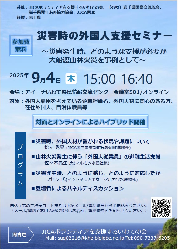 ▶【他団体】災害時の外国人支援セミナー~災害発生時、どのような支援が必要か 大船渡山林火災を事例として~(開催日:9月4日)