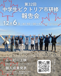 ▶(終了しました)【参加者募集】中学生ビクトリア市研修報告会・OBOG交流会(12月6日(土))