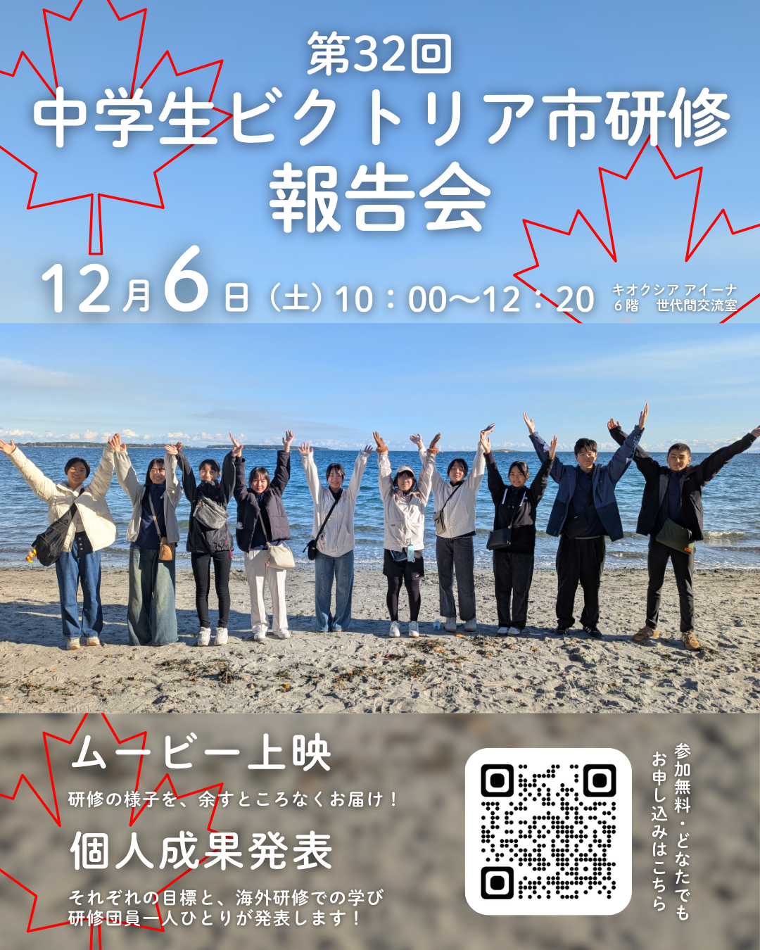 国際交流に興味のある方、中学生ビクトリア市研修に挑戦してみたい方など…たくさんの方のご来場をお待ちしております!