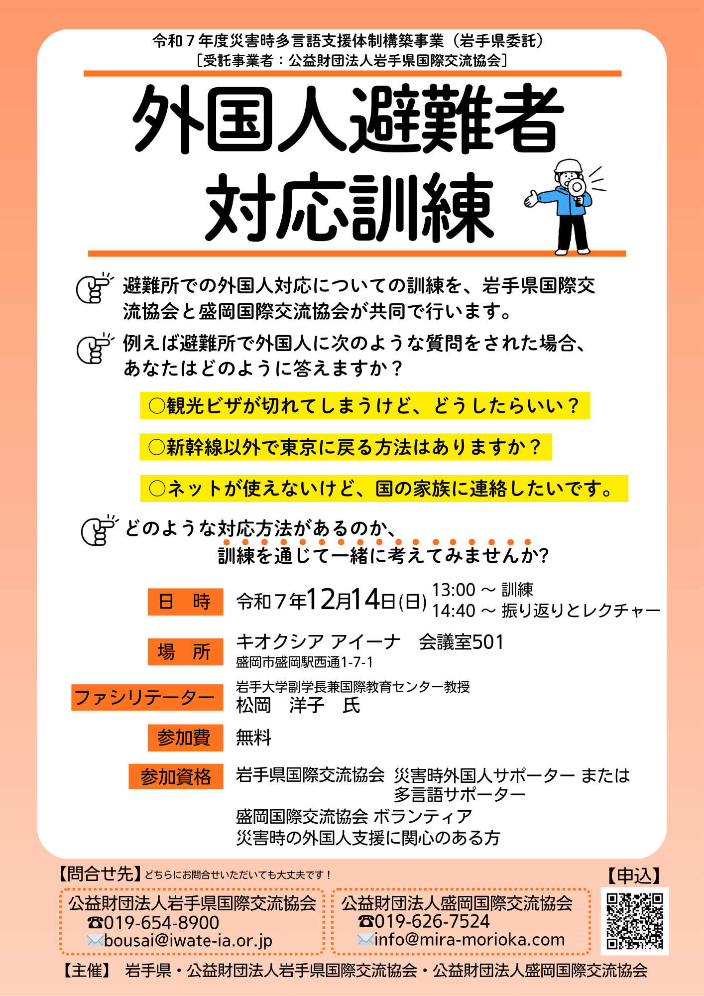 ■対 象:・岩手県国際交流協会災害時外国人サポーター または 多言語サポーター